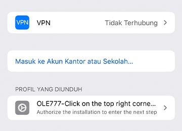 Pilih "OK" lalu "Izinkan" untuk mengunduh profil konfigurasi. Tunggu prompt dan "Tutup". Anda akan dialihkan ke pengaturan VPN dan manajemen perangkat di ponsel Anda.